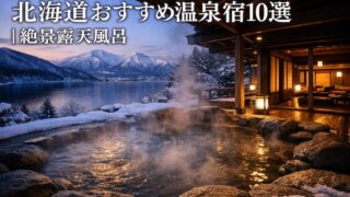 北海道のおすすめ温泉宿10選を紹介。露天風呂付き客室や絶景温泉を楽しめる人気宿を厳選。登別・洞爺湖・阿寒湖など北海道旅行で泊まりたい温泉宿をまとめました。