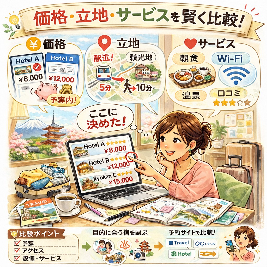 国内旅行で後悔しない宿選び:価格・立地・サービスを賢く比較するコツ」