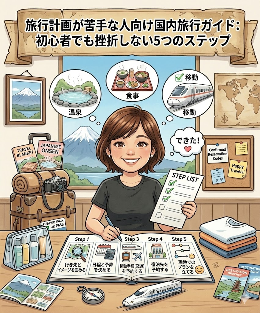 この記事では、計画が苦手な方が挫折してしまう心理的なメカニズムを解き明かし、初心者でも、あるいは「面倒くさがり」な方でも、わずか5つのステップで出発までこぎつける「最小限の計画術」を徹底解説します。あなたの「重い腰」を優しく、そして確実に持ち上げます。